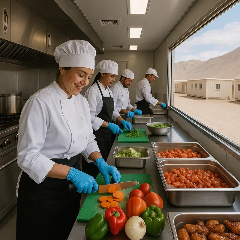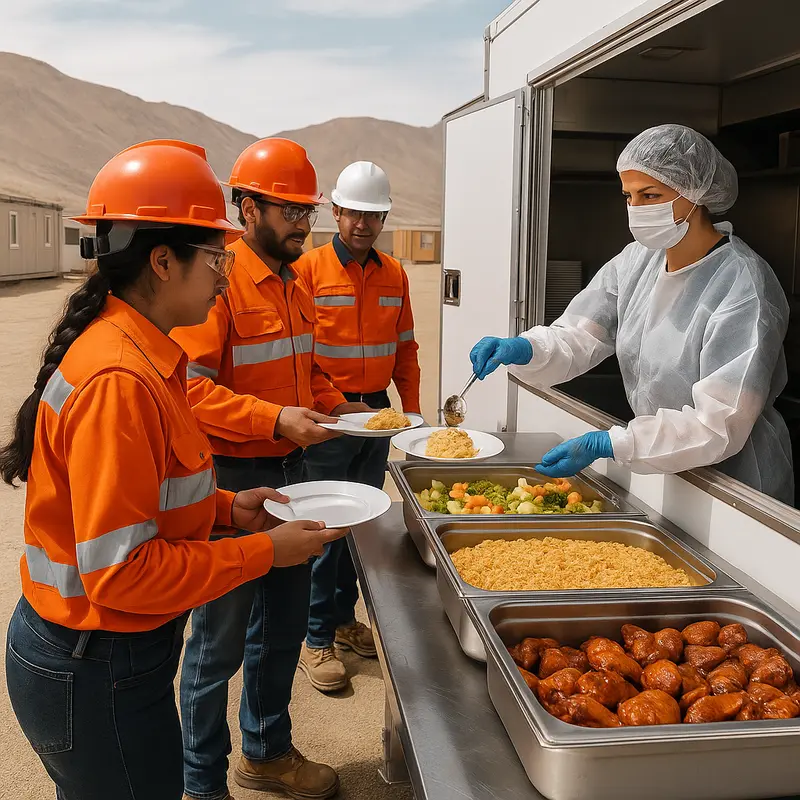 Nos adaptamos a la operación de cada cliente con servicios flexibles, transporte refrigerado y cocinas móviles, optimizando tiempos y recursos en terreno.